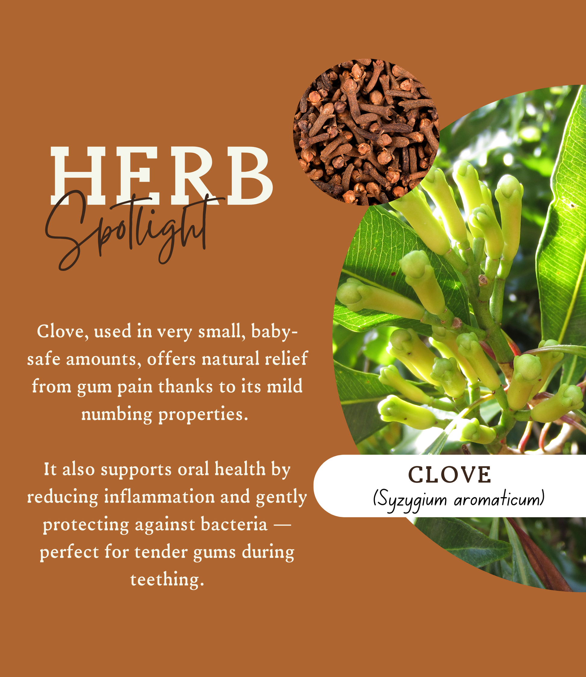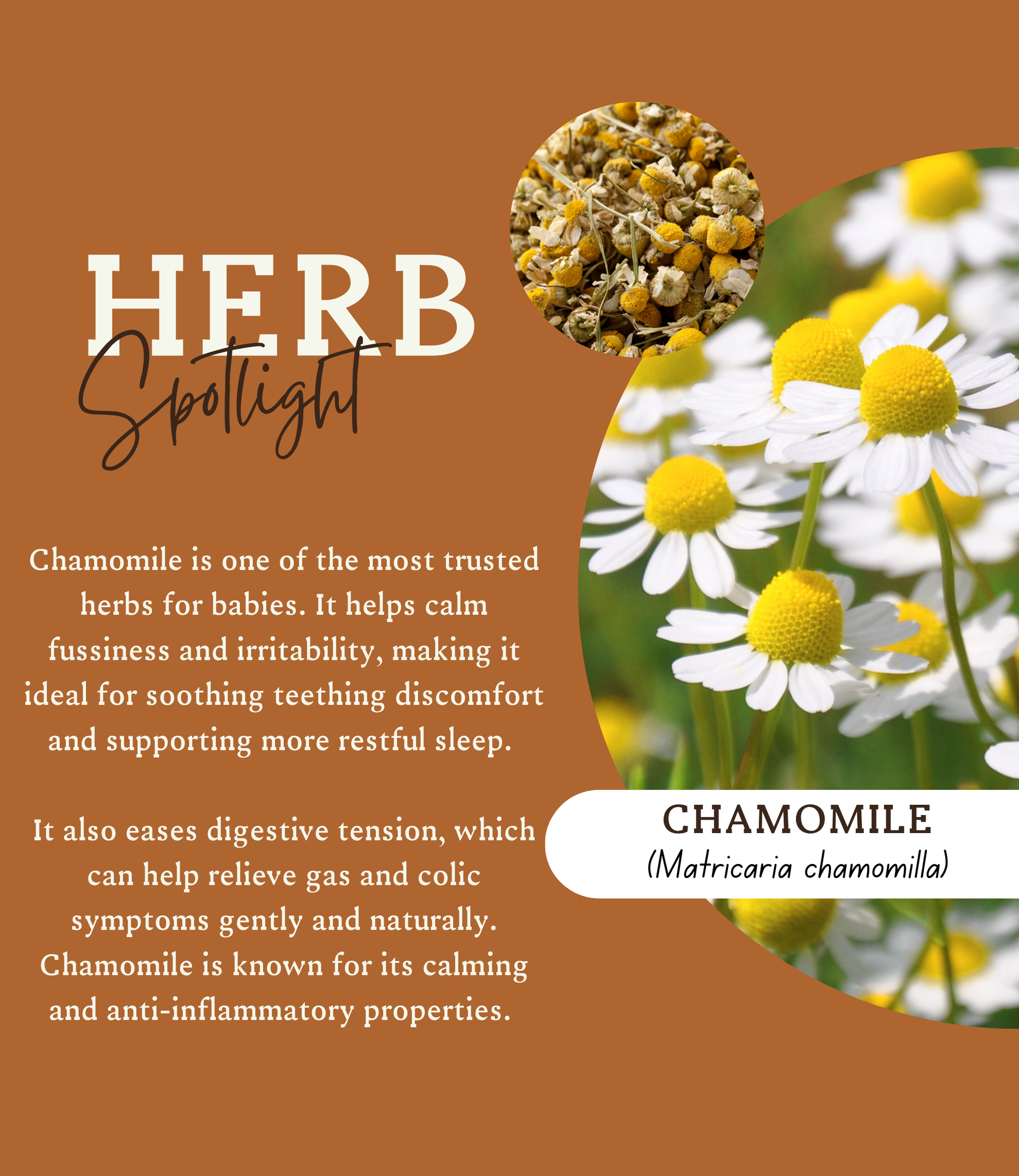 This soothing herbal tincture is made with calming chamomile and clove and is crafted for teething babies. It helps ease gum discomfort naturally and gently.